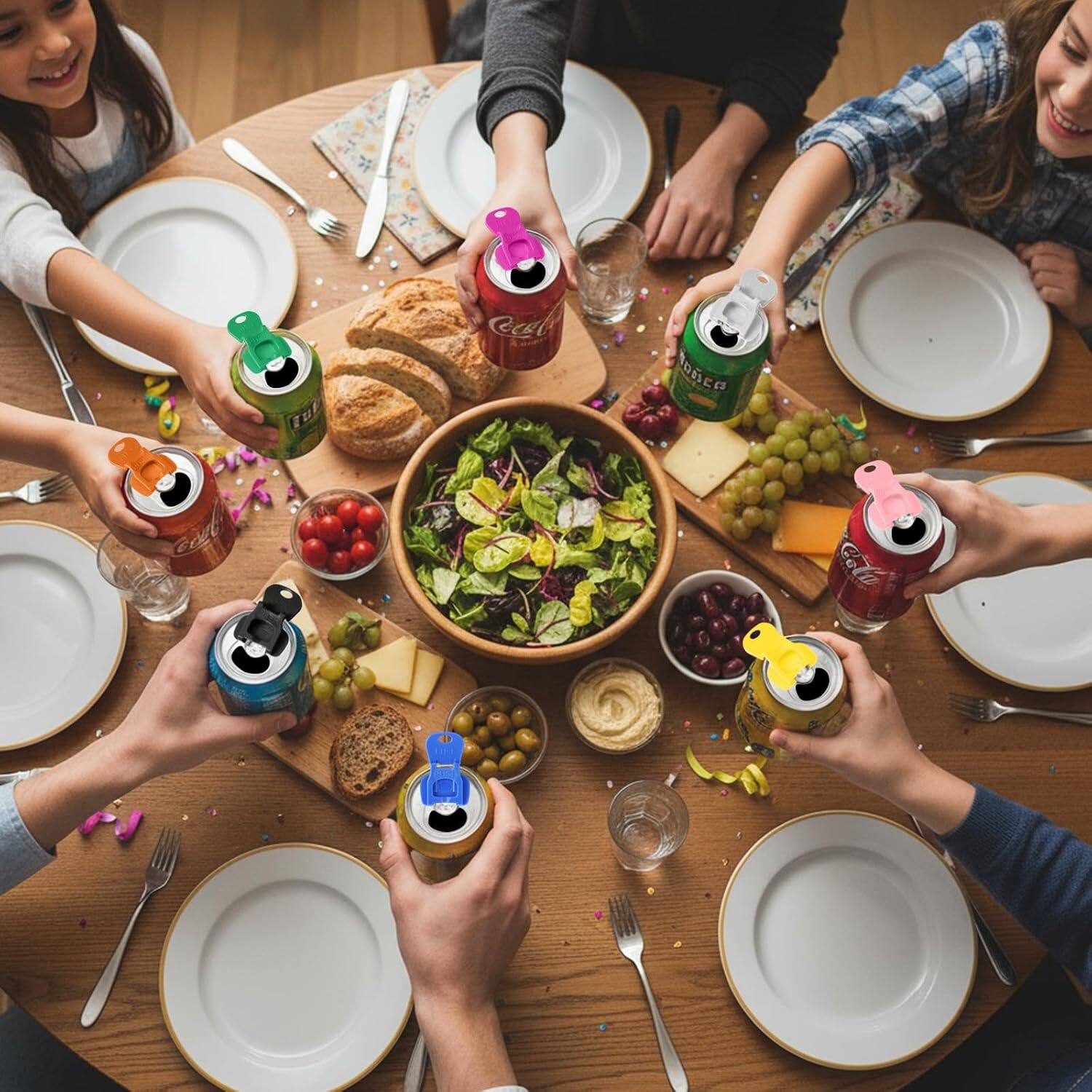 No more finger pain, broken nails or bent tabs from hard-to-open soda cans. Use one of our strong plastic can saver caps to quickly and easily pop tops. Perfect for kids, mom, dad, and drinking buddies. Works on slim cans, too!