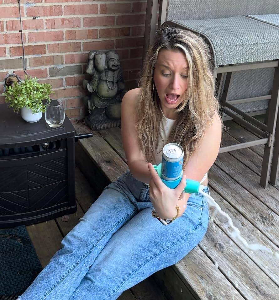 Spin the base 3-5 rotations to Randomize, Pull to lock the spout, insert a beverage, and twist the base 1 click. Pass to the next player, and repeat – until the can erupts, making one person the “loser” who has to chug. Will it be 2, 8, or even 20 clicks?!